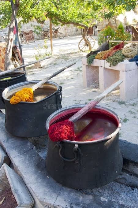 Hand - dyed yarn, the first step in every timeless rug. Color begins here - yarn dyed with care for carpets weaving. Form row fiber to rich color.